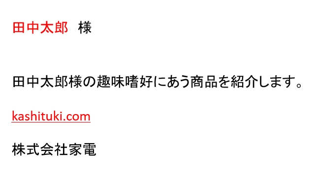 このデータから、カスタマーIDに紐づくカスタマー名と紹介したい商品URLをメールに表示させたいです。