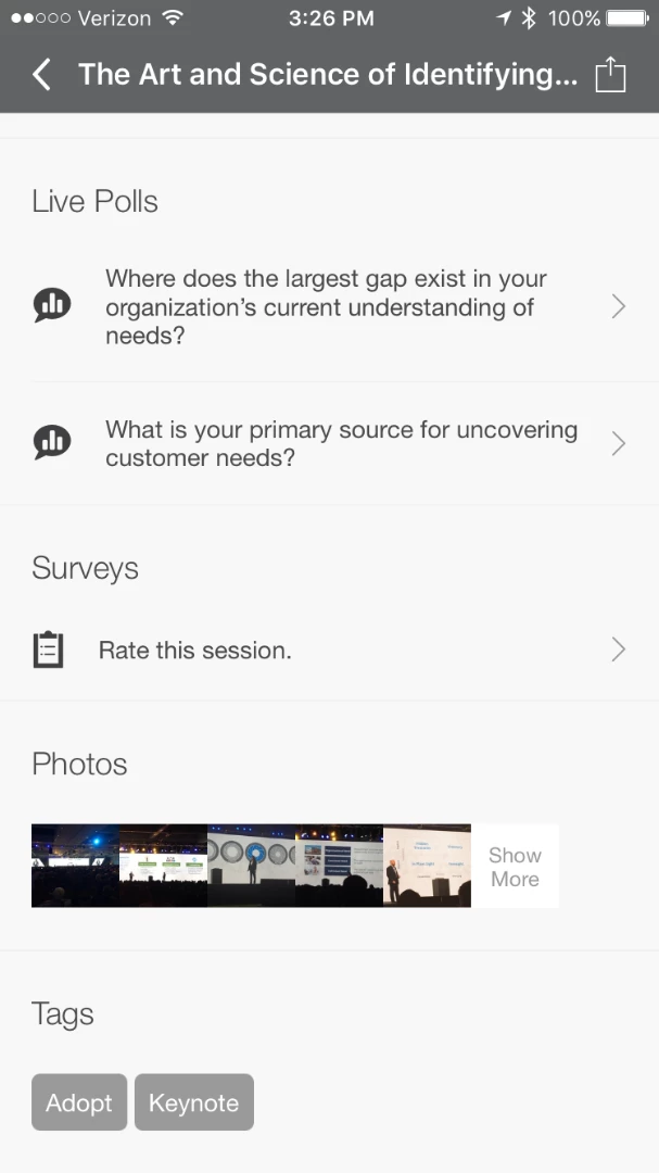 - As suggested in the app event for 2016 Summit, create a geo-location service (if possible, but not likely), that can track where the user is to validate that they are in a particular room or session when posting.
