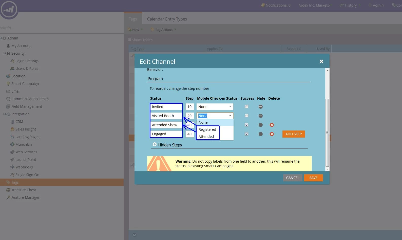 The second condition is that both of the statuses in the app need to have been associated with statuses in your program channel.
