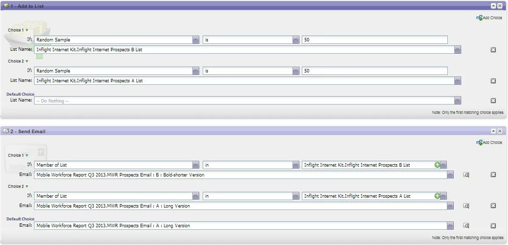 I am sending out an email to get people to download our new white paper. If they download the white paper, we want to send them a follow up email to visit our white paper hub - however for this follow up email we have two different designs we want to test.