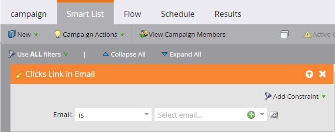 3. I want to change program status to Engaged if they click on any link in an email - will the below smart list in the engagemeng program only count clicks in emails WITHIN the engagement program, or across the entire system (which I don't want)?