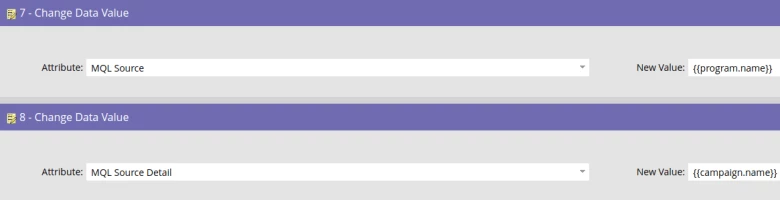 In the executable campaign, we want to provide the sales team context on why this person is MQLing through “MQL Source” fields. Therefore, we can set these “MQL Source” fields equal to the {{campaign.name}} or the {{program name}} token and since “Use Parent Campaign Token Context” is set to “True” these values will be populated from the programs containing the contact sales campaigns or the contact sales campaigns themselves.