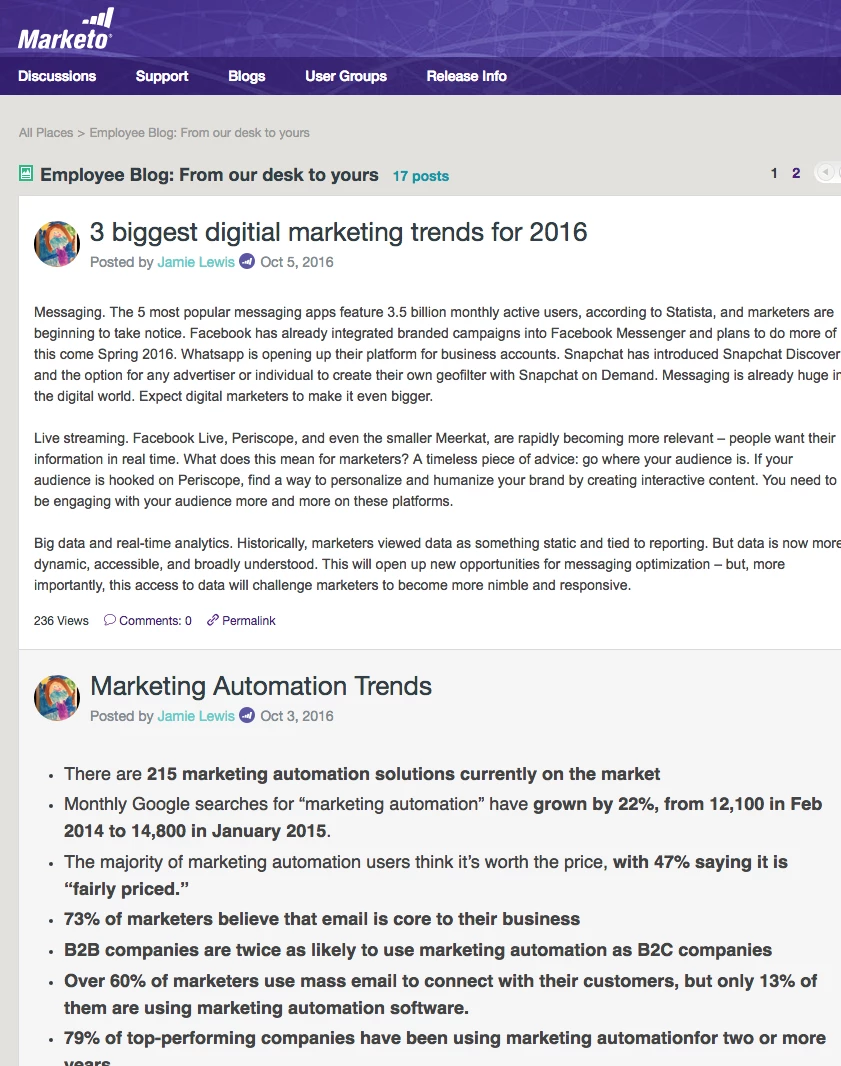 Now that "Employee Blogs" have been surfaced to one of the top blog sections, is the idea that Marketo employees will be blogging on a more regular basis?