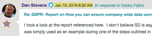 At 8:32am ET, I provided comments to this discussion: GDPR- Report on How you can ensure company-wide data compliance standards (including GDPR legislation)