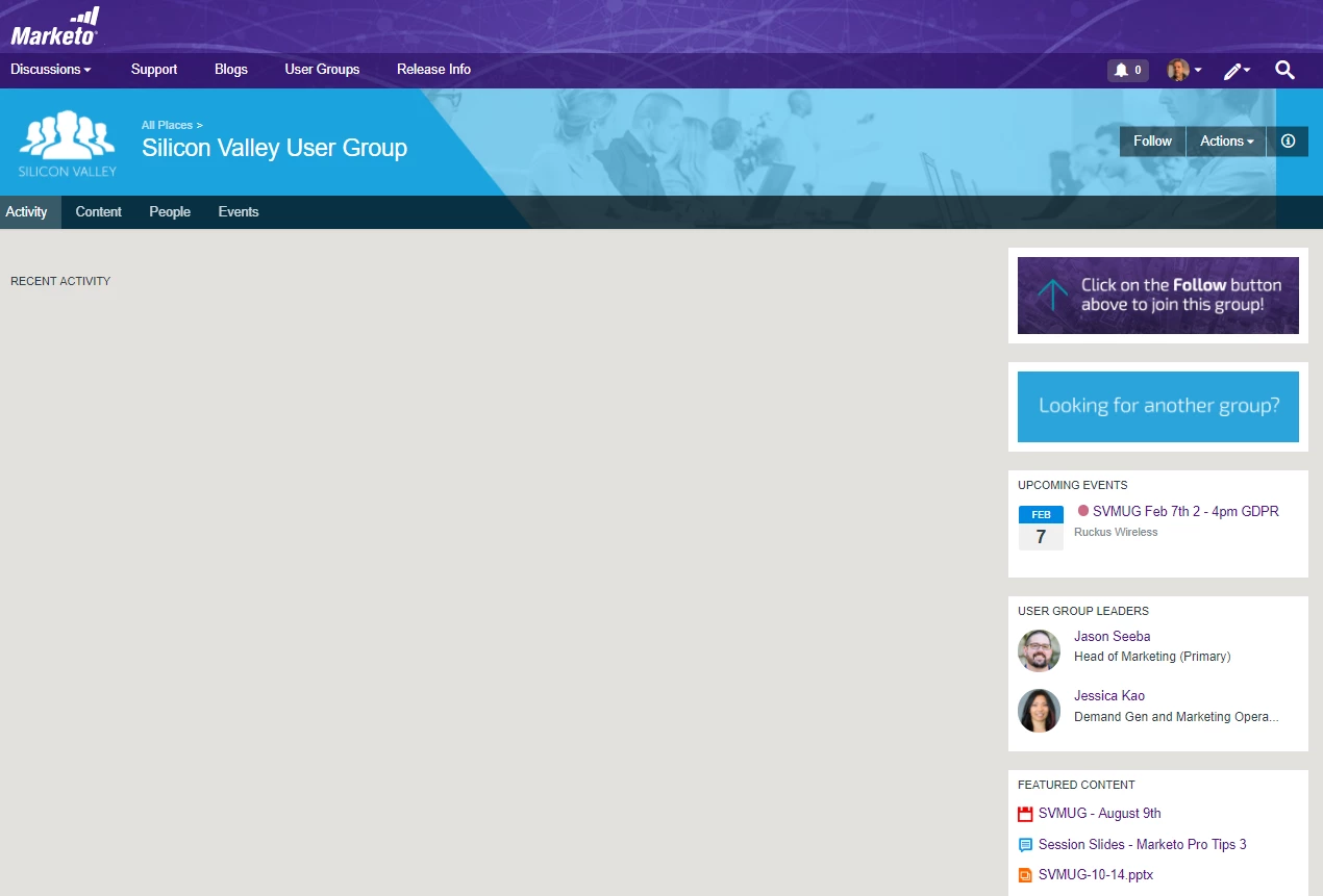 1. A new home page experience – When you land on the home page, you’ll see a news feed of what’s new and exciting in the Marketing Nation Community. For those of you who have been part of Marketing Nation for several years, it will be like going back to the good ‘ol days. The Marketo banner has also been removed so you have immediate access to what you really care about, the exciting and helpful conversations happening among your fellow Community members.