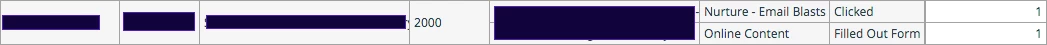This individual has clicked on one email and then filled out a form on our website within the same reporting period. While this is OK in the main report and preview, if we download the Excel report, the merged cells for the individuals' name and contact details prevent the report from being filtered in the spreadsheet.