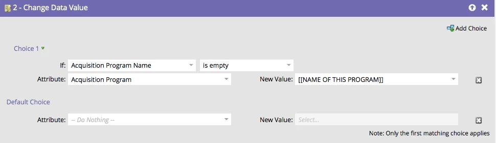 Has something has changed? Because what I see now is that I can select either field in a Smart List but can select only Acquisition Program in a Change Data Value flow step (though I could have sworn I had used Acquisition Program Name in a Change Data Value flow step in the past - perhaps it's my bad memory).