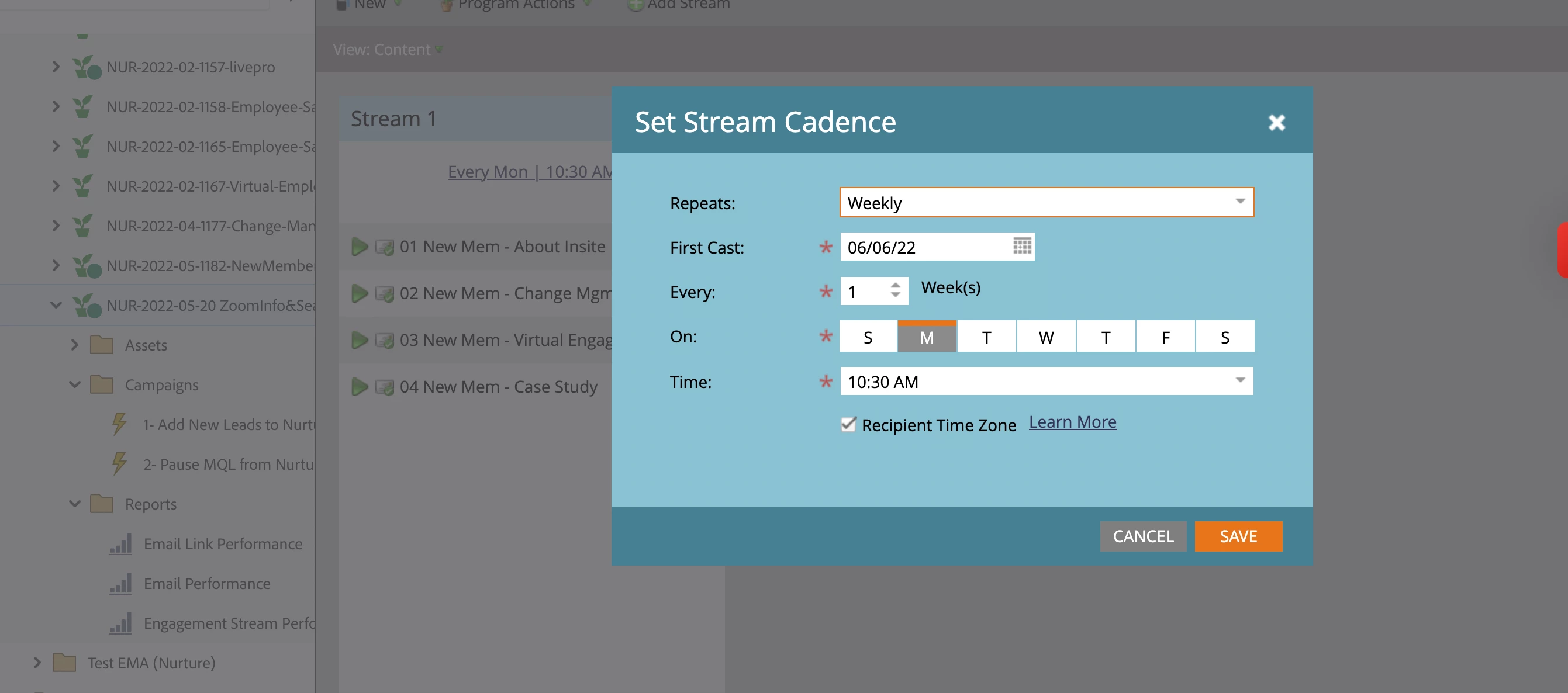 Activating Engagement Stream with Recipient time zone