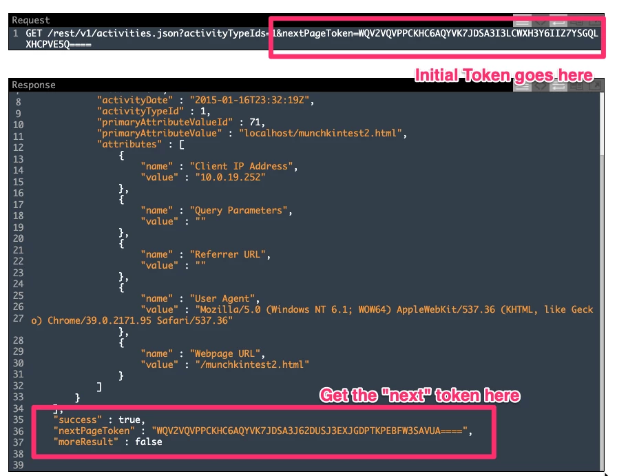 - A “moreResult” Boolean. You’ll loop through until a “false” is returned, indicating that there is no more data to be returned.