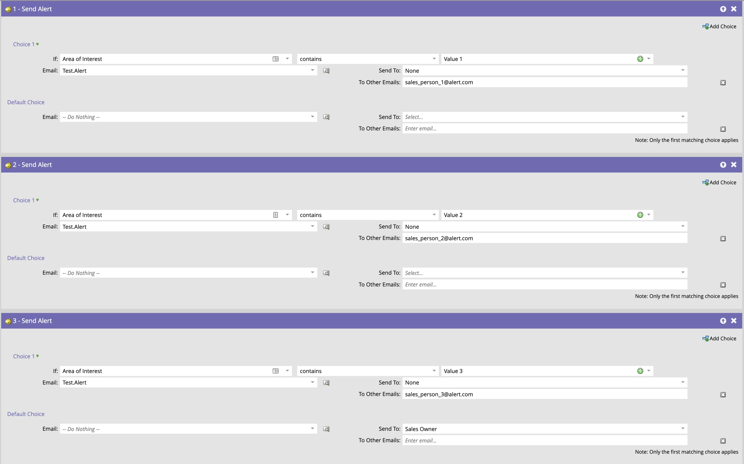I'm a little new to creating forms on Marketo and I am unsure what to do. I've created a form with multiple "areas of interest" checkboxes that someone can select. I want to notify the right sales team leader in an email when someone selects 1 or more areas of interest. How do I do that?