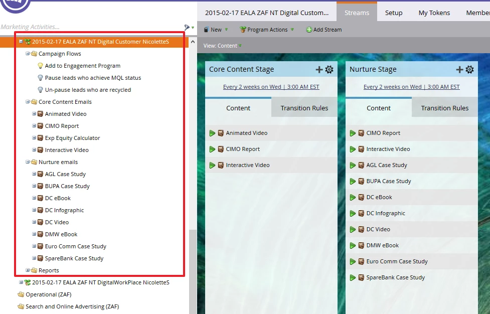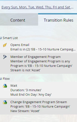Our goal is for the lead to receive emails every 7 days unless they click or open. If they engage, we move them into the next stream and send them the new stream's email within three days.