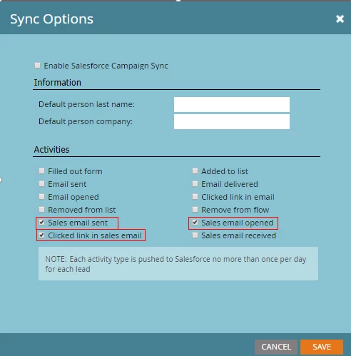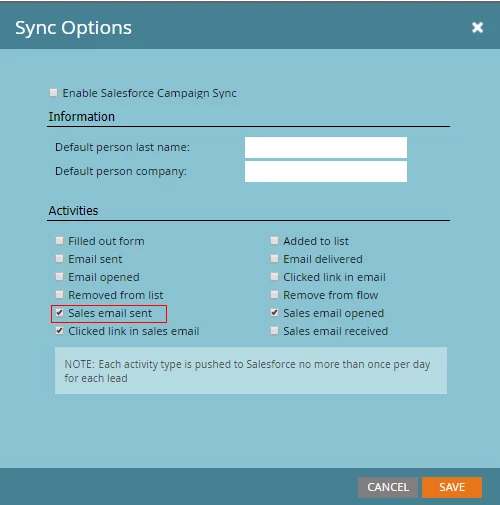 Use Case 2 - If in Admin clicks the radio button "Sales Sent Email" and Contact A receives 5 e-mails from MSI we understand and have tested that only one task is synced as noted on the screen snag.