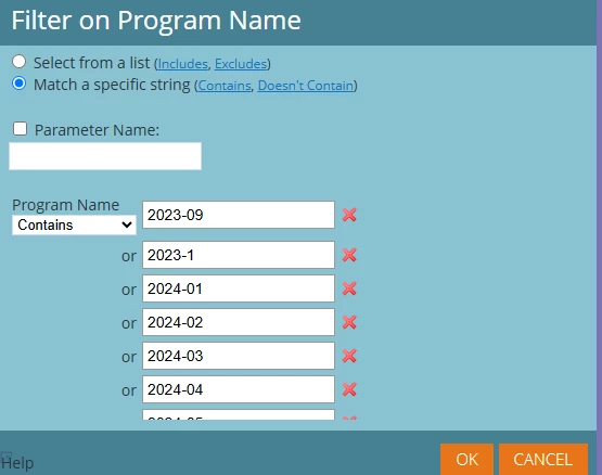 Is it possible to use a syntax and place all of the filters in a single field - for example CONTAINS '2023-01' or '2023-02' or '2023-03'