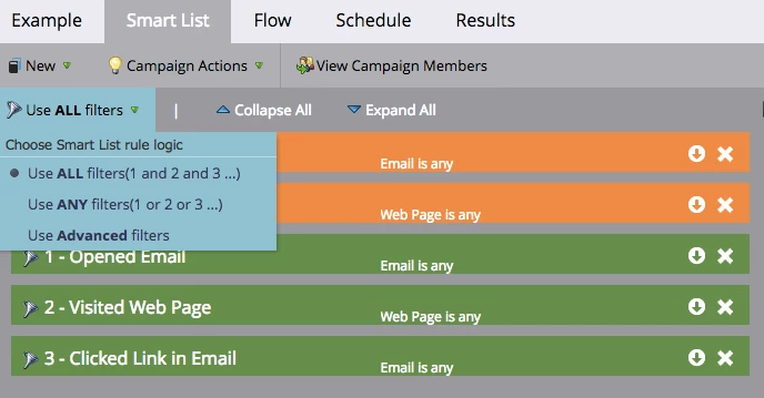 I have used the "Use Advanced filters" option many times but it seems to be greyed out on several Smart Campaigns lately. Am I missing something?