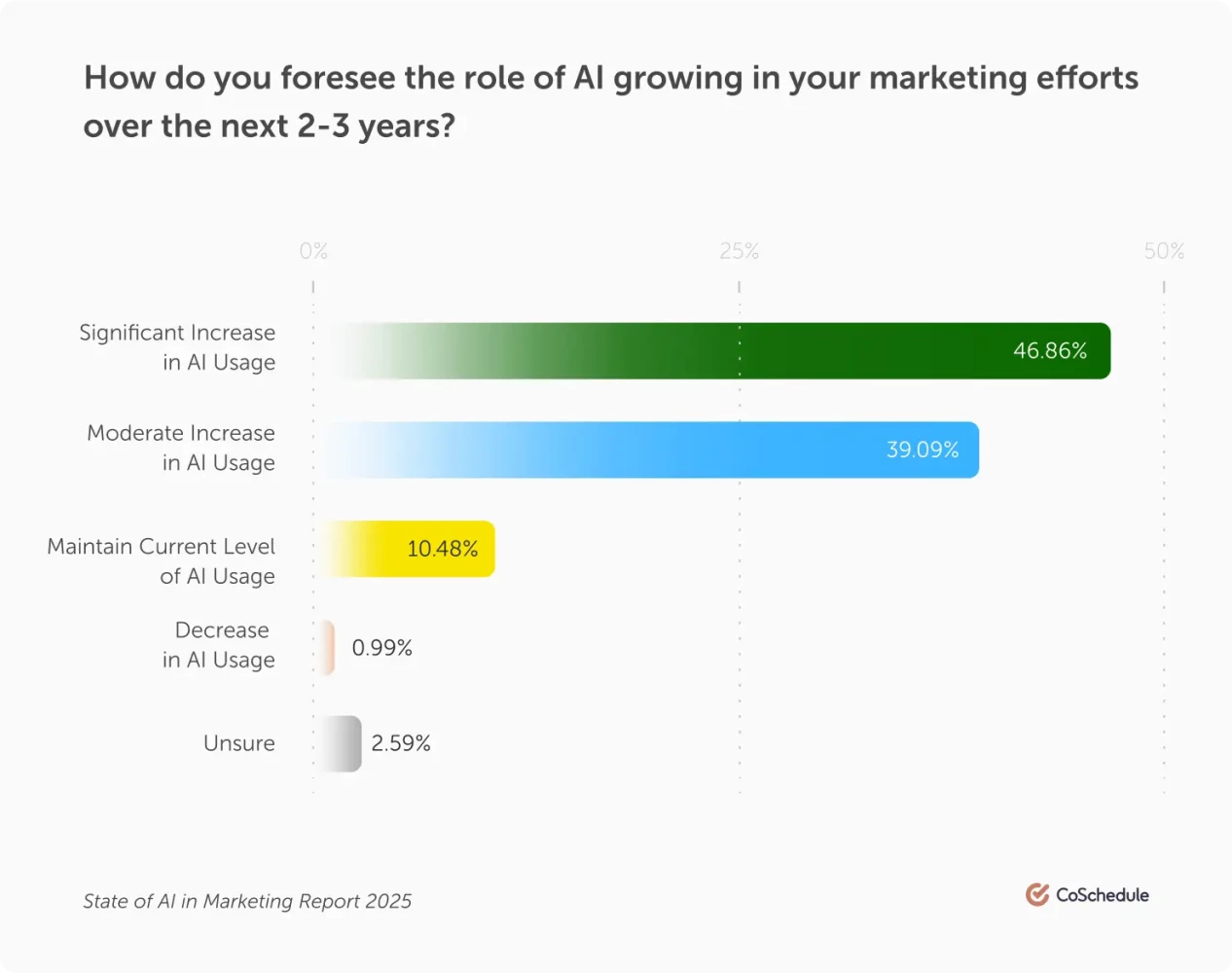 The opportunity lies in leveraging the time and efficiency AI creates. Marketers using AI report saving significant time each week and feeling more productive. The key is reinvesting that saved bandwidth into higher-value activities: