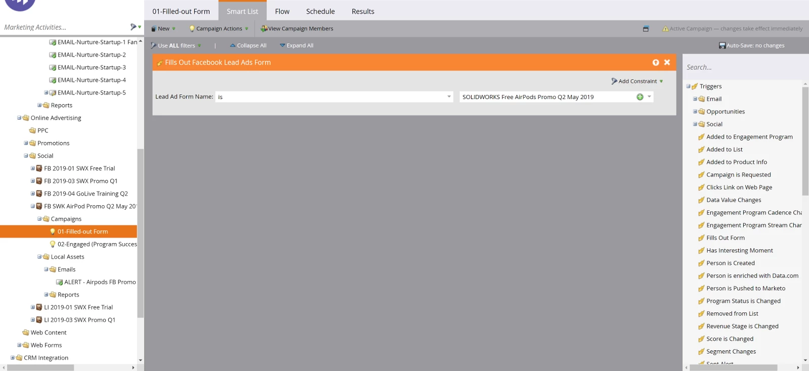 We have a program set up with a flow step to alert our lead manager and the social media team when someone fills out a Facebook form. We checked a smart list to see that someone did fill out the form and the lead was created in Marketo with all the appropriate statuses but the alert was never delivered. Checking the lead's activity log confirmed that the alert was never sent. Our lead manager is getting alerts for other web forms so is there something extra that needs to happen with these external forms before the alerts work? Here are screenshots of our smart list and flow steps in case there's actually a mistake in there somewhere.