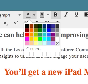 Another suggestion being that if you change a text color in the rich text editor and place a custom color in there and save the box and pull up another box, that custom color doesn't remain cached in those white boxes below "Custom...". It seems like that functionality is supposed to be there but isn't.