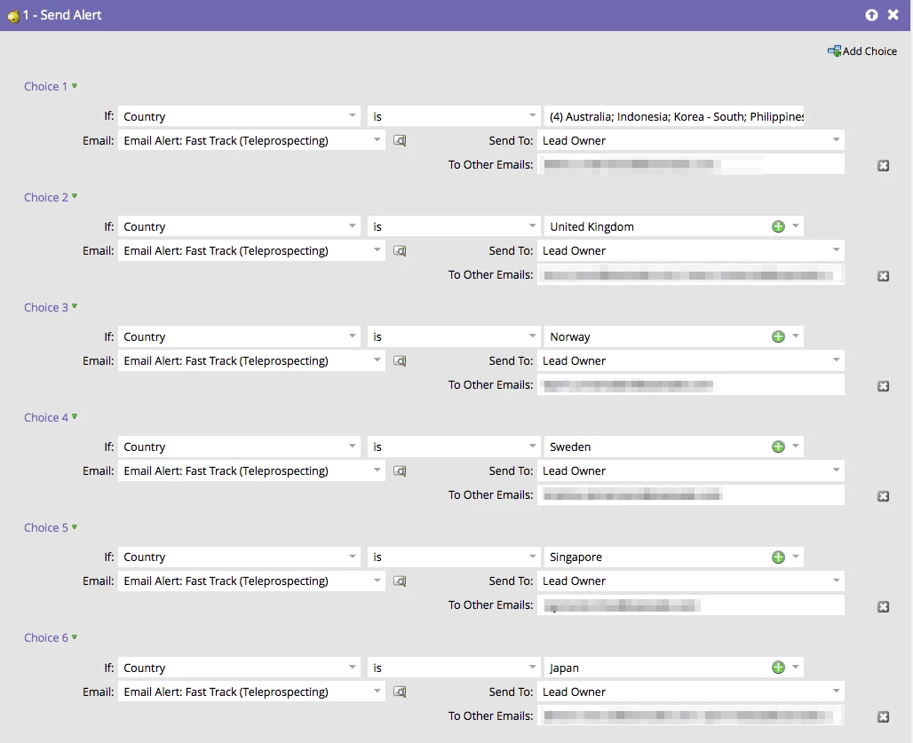 Occasionally, we'll run into a situation that requires more complex logic in our smart campaigns that what Marketo allows.  Our only choice is to create multiple smart campaigns.  Instead, it would be great to have multiple levels (two would be a good start) of choices within a flow step of a smart campaign.  For example, a single "Send Alert" flow step might look like this: