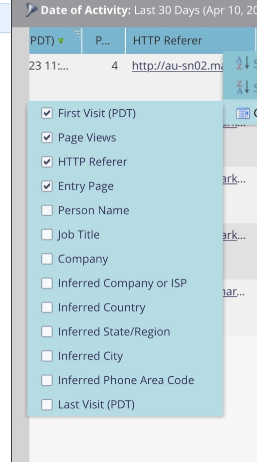 However, if you click an anonymous record in the report, open it up, and view the “Visit Web Page” activity, you’d see the Client IP address as one of the attributes on it. Hope this helps.