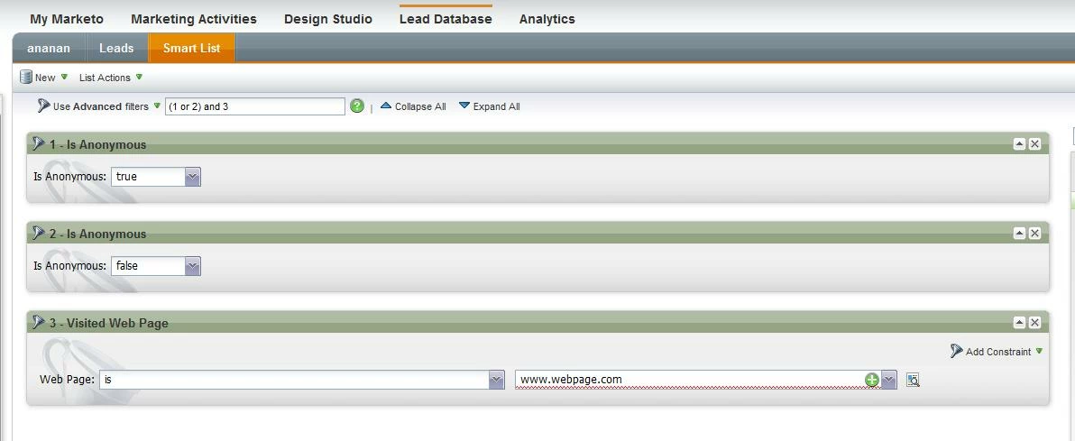 Is it possible to pull in anonymous leads in a smart list with inferred name, company, city, state, etc? I created a smart list to see who viewed a landing page and want to see all known and anonymous.