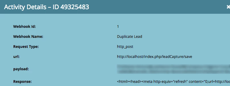 We have a webhook setup to create leads using our local endpoint URL (localhost/index.php/leadCapture/save). This has been working fine for years. Detail when calling the webhook looks like this: