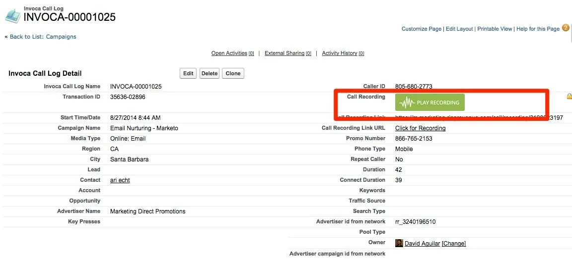 During the sales process, when an SDR (Sales Development Rep) hands over a lead to an AE, normally an AE would look at the SDR's notes in the activity history. But as we all know, sometimes those notes are sparse. But now every inbound call gets attached to a lead or contact's record in Salesforce as an Invoca Call Log.