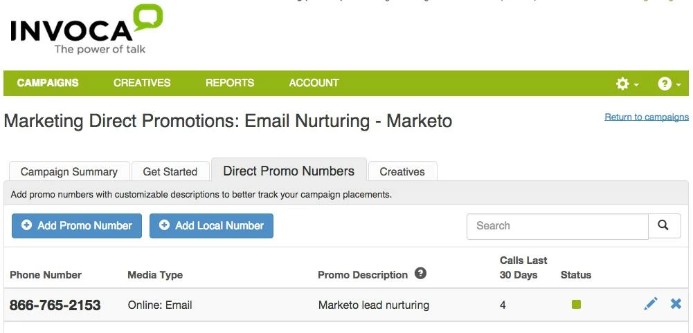 In the Invoca platform, we create a unique phone number (which is just as easy and fast as creating a new form in Marketo), and include that number in all of our Marketo nurturing emails.