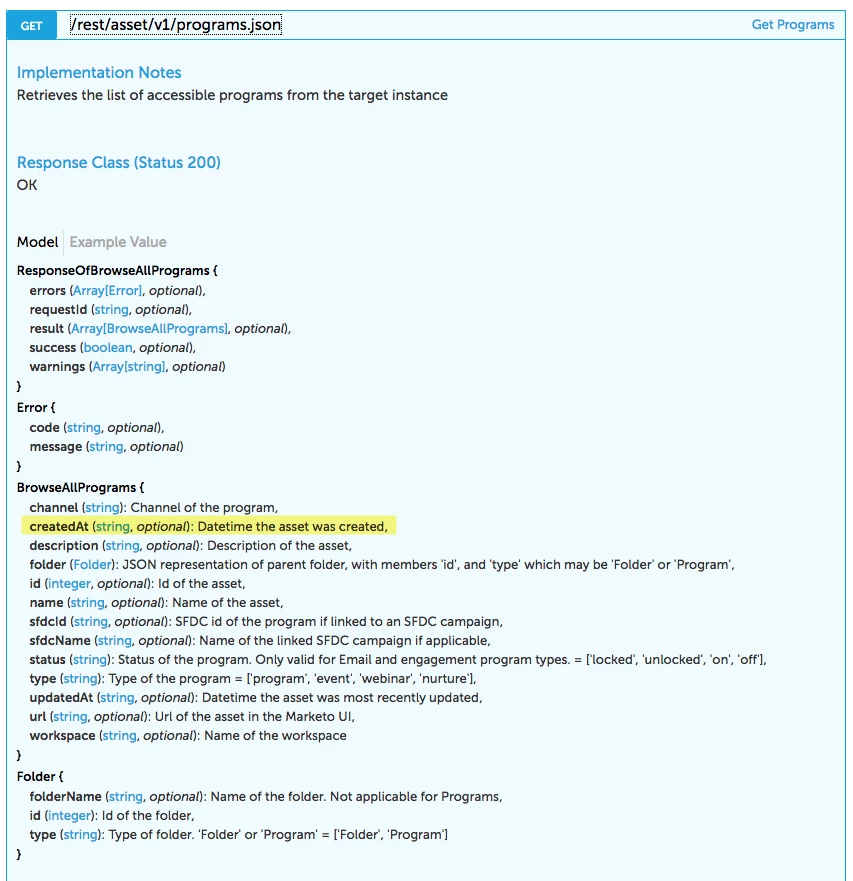 QUESTION 1 (PROGRAMS): During our call today, we learned that the developers are having to make daily calls to pull all PROGRAMS into our DB. I asked them why then aren't just grabbing new programs and appending them to a master Program table. Then state that it's not possible. While the GET programs call does return a "CreatedAt" date: