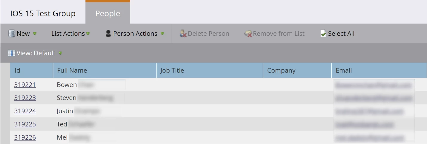 Click on the People tab again and record the number of list members. You can then compare the two results and gain insight into iOS15 adoption.