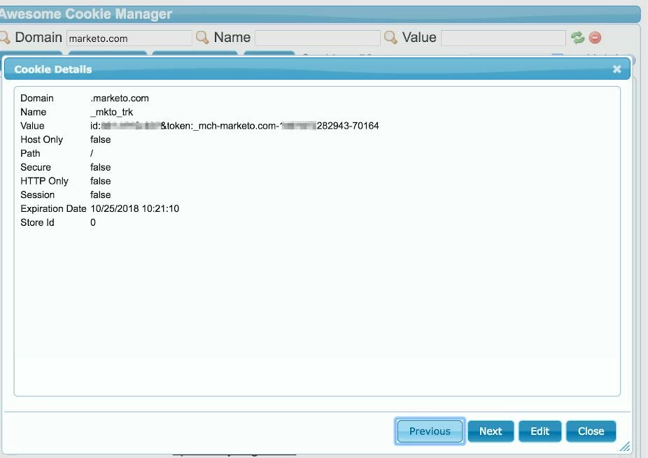 | _mkto_trk | The name of the Marketo Munchkin Tracking Cookie. The cookie contains the Munchkin ID of the instance along with a unique identifier for this lead (known or anonymous. |