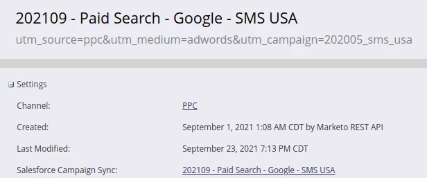 This is why manual input is required to update the smart lists with the UTM querystring for the ad campaign. Thankfully, our zap updated the description of these smart campaigns to be the UTM querystring so we can copy the querystring right from the description before pasting into the smart lists.