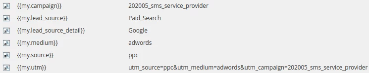 4. Update the utm_source, utm_medium, and utm_campaign fields to each of the corresponding UTM parameters. These 3 fields are supplemental to the Person Source and Lead Source Detail fields to provide more information, the utm_campaign field especially, about where a lead came from. The utm_source and utm_medium fields can be removed, if desired, since their information is already contained in the Person Source and Lead Source Detail fields.