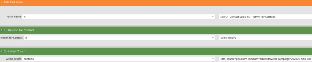 Remember that “Lastest Touch” field we set in the UTM campaign flow above? Well whenever we get a person who signs up or contacts sales with this “Lastest Touch” field equal to the UTM querystring of our ad campaign then we know this ad campaign was the last thing they interacted with before carrying out these actions.
