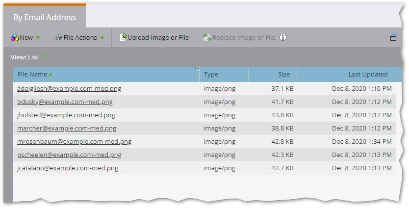 You choose a great naming convention: <email address>-med.png (“med” for medium-size, in case you want to add other image sizes later):