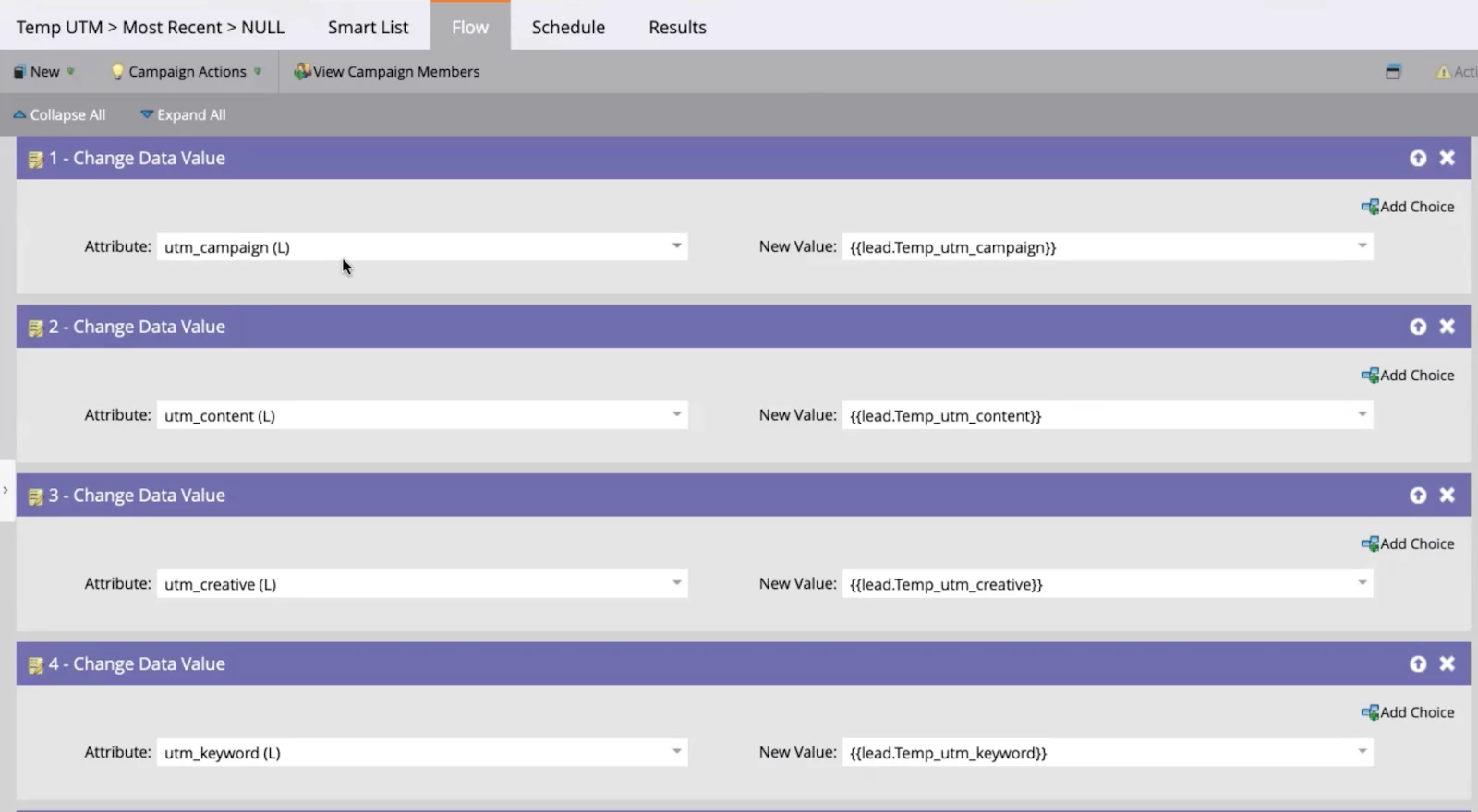 In other words, if you’re hosting a webinar, you have your global form and it captures the temp UTMs. If you push that data into the “most recent” field, that will be retained until new data comes in to replace it. Meanwhile, if you push it to the “program” fields, you can see what drove people to that particular webinar in perpetuity. This ensures that you have a local data set of performance analysis for that particular webinar.