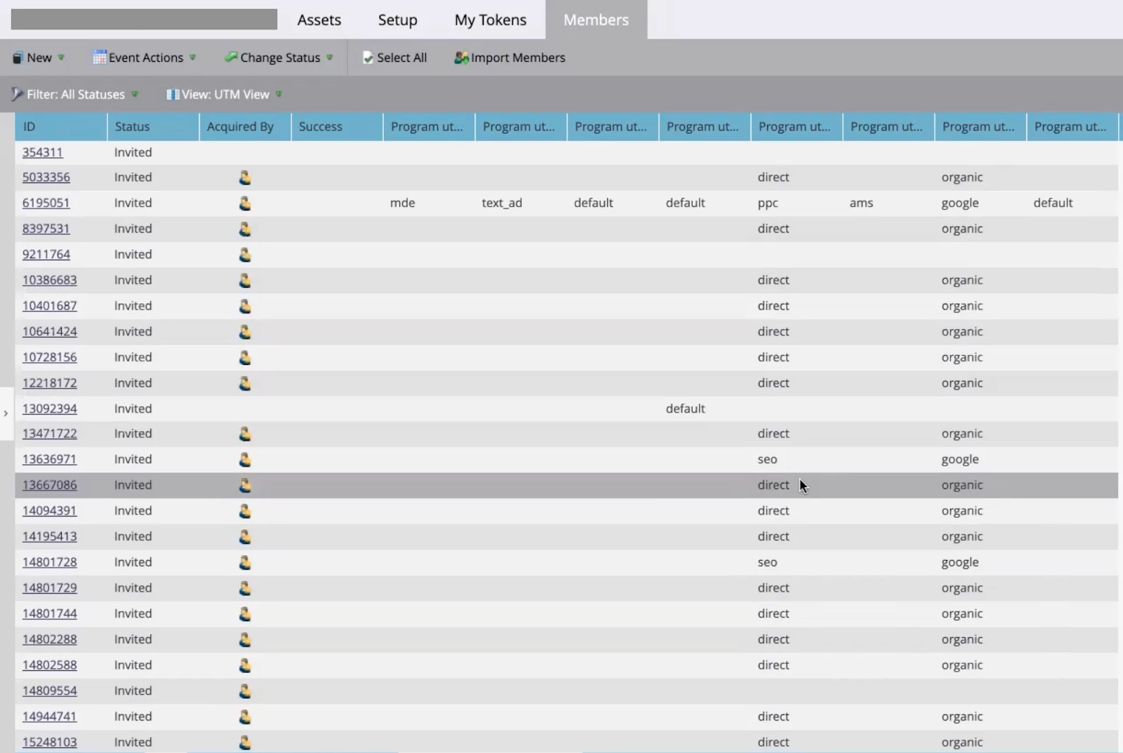 Once the program is live and we go in to look at our members, we can modify our view to only show data that’s relevant to UTM. This will be mirrored by what’s reflected in the SFDC campaign if your transfer of information is successful.