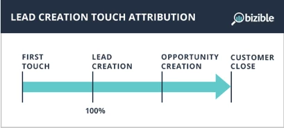 The Lead Creation model attributes 100% of the attribution credit to the LC touchpoint, when a prospect provides their contact information and becomes a lead.