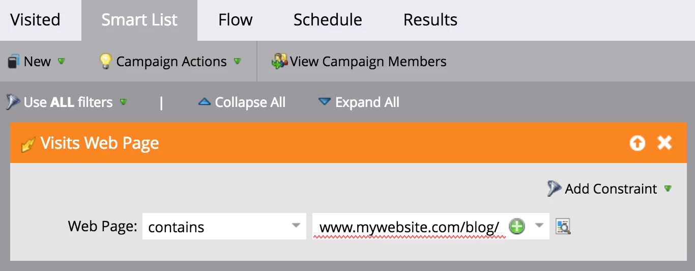 Then we created Smart Campaigns to record people when they do the above actions. We can then report on this.