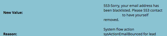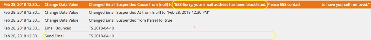 Hi everyone! We're in the process of running an email campaign for an event invitation and had 100% deliverability on our first send (2 weeks ago), but had a 10% drop in deliverability this week on our reminder email. I know these emails to be accurate, and I know these individuals have taken action (opened/clicked) on previous emails from earlier in February. In the activity log, I found the following: