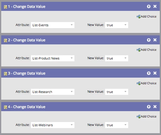 02-Update Preferences (Trigger-New): Likewise, decide how you’ll opt-in new subscribers to preferences. How do new subscribers currently opt-in? Do you include implicit opt-ins such as any form fill out? Do opt-ins get automatically added to all preferences at the outset? Make sure to include privacy and anti-spam regulations in your considerations.