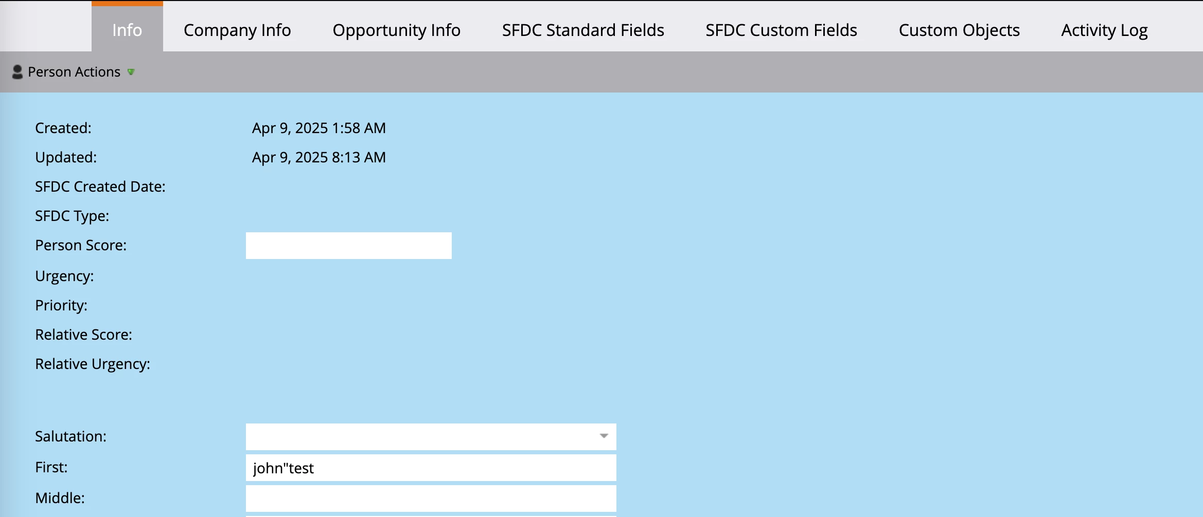 Ex: fristName field have value: john"test
