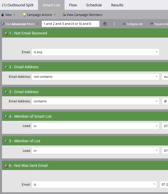 The campaign was cloned from a previous campaign that didn't have issues, and the smartlist was pulling from a smartlist and static list.