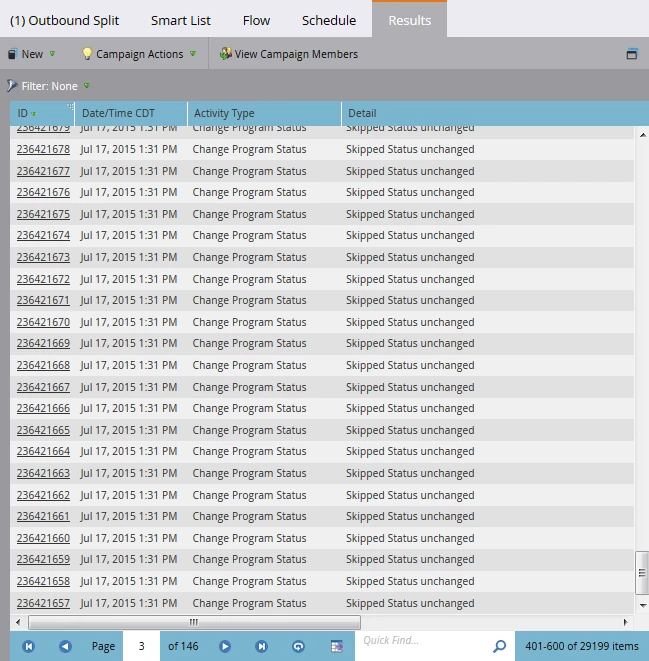 I sent an outbound email campaign, and only a fraction are showing as sent. Some of that undelivered is from invalid emails, unsubscribed, suspended, etc., but the majority of leads' activity logs cite "skipped status unchanged", with no more information. I created smartlists for "not was sent email" and "not was delivered email", but these give me the "who" more than the "why".