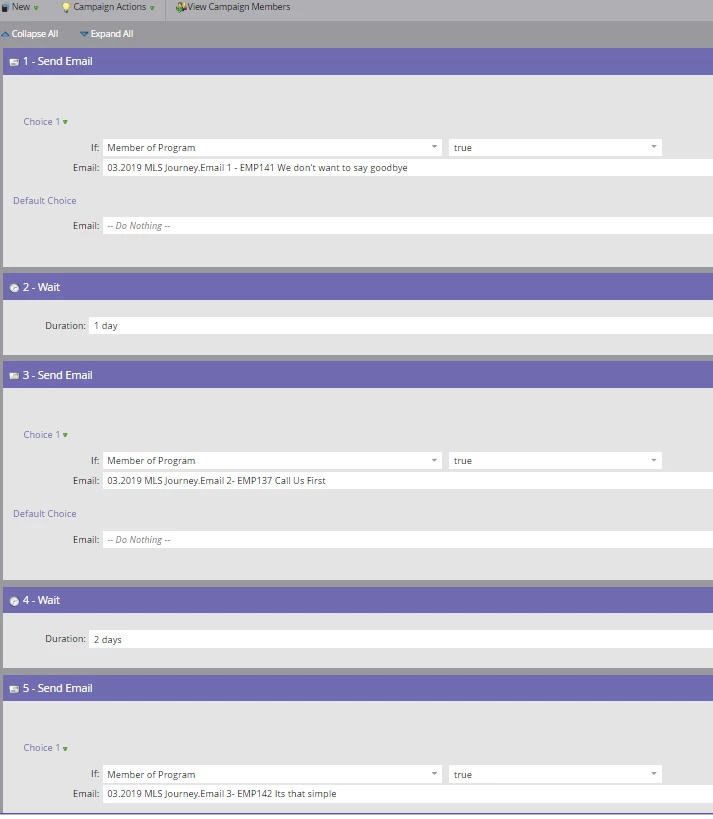 Ex: Say "member of list" -> start from send email 1 -> send email 2-> and so on. I tried using this...see below: