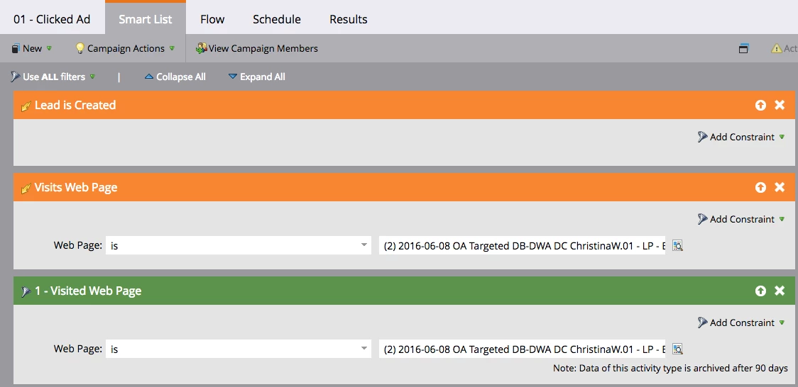 If I add in the following trigger and filter, will leads that visited this LP while anonymous - let's say a month ago - qualify for this campaign if/when they become known?
