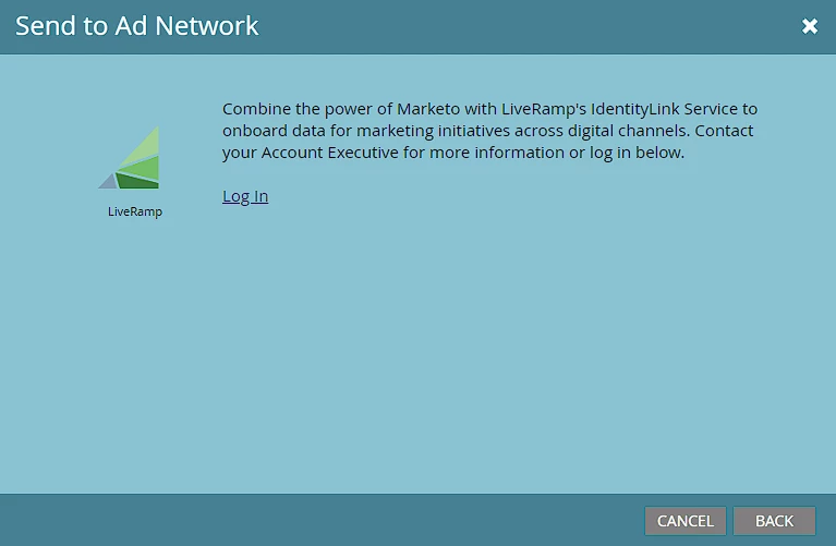 It appears that LiveRamp is no longer a native integration option. On the Send a List to an Ad Network documentation page, it says "Choose between LinkedIn, Facebook, or Google (the other options are not available at this time)." This is further supported by the details on the Understanding Ad Network Integrations documentation page under the "Current Functionality" section.