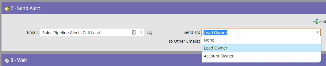 I am attempting to build a sales lead nurture pipeline for our telephone sales team. I will be receiving lists of new leads that have called us for a quote each day, import them into Marketo, and they will automatically be added to a drip campaign that sends an email, waits a couple of days, sends another email, and so forth. After 6 days in this campaign, I want the sales reps to get a "send alert" that tells them to call and follow up with the lead.
