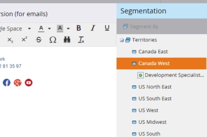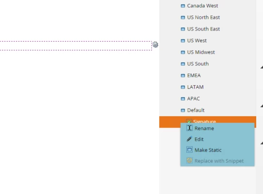 Now, when I create en email using that template, I assign the "Signature" as a Dynamic Content using the segmentation of the territories.