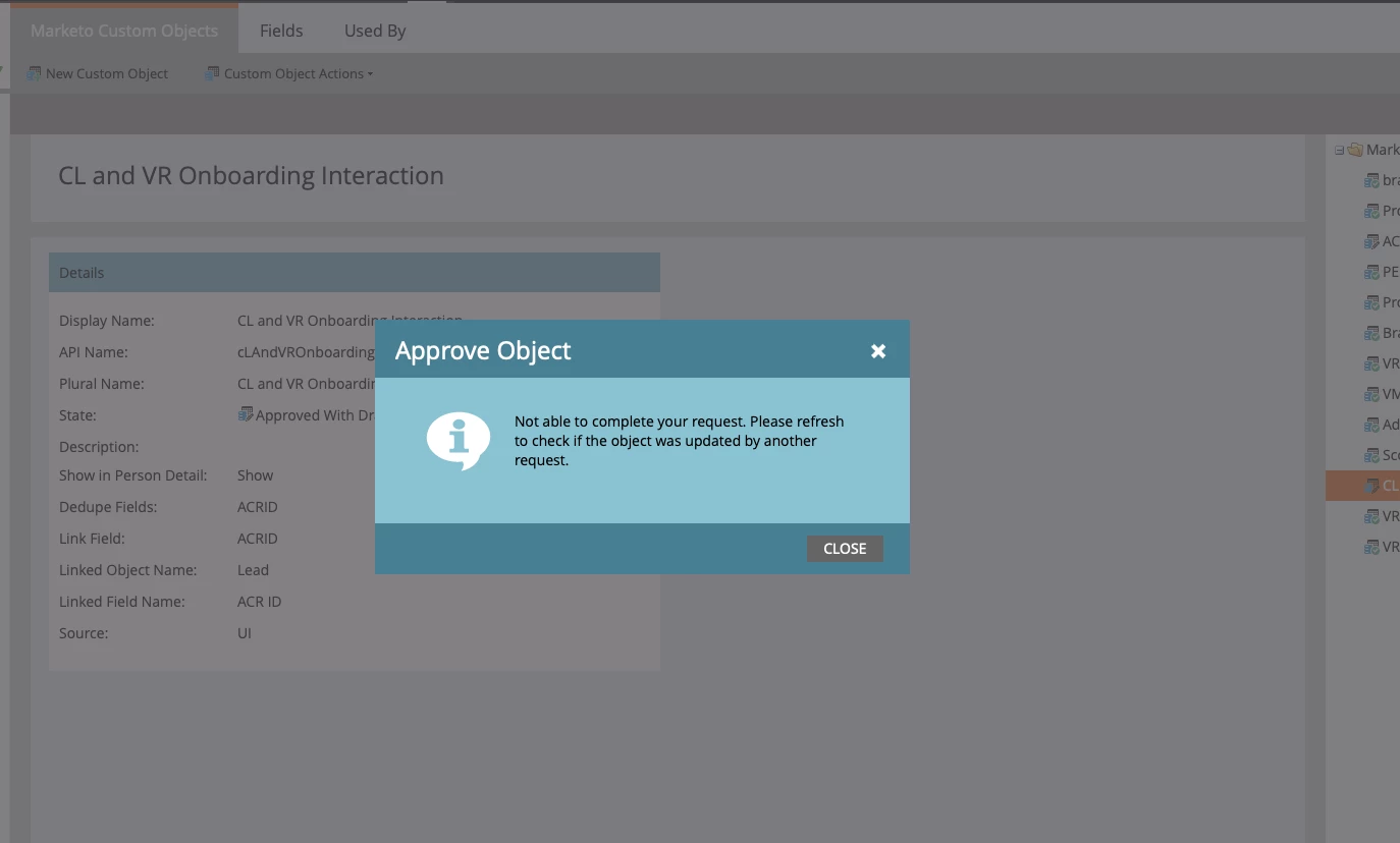 M custom object will not approve draft. I am trying to delete 4 fields. Here is the message I have received.