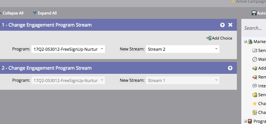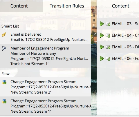 I'm adding transition rules to move people from stream 1 to stream 2, pretty straightforward. However, the filters that were there from the marketo template cloned program I can't edit or remove so the flow step will move them to stream 2 and then move them to stream 1 again. How do I remove this greyed out filter?